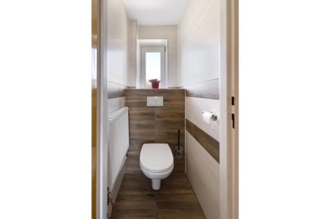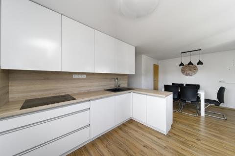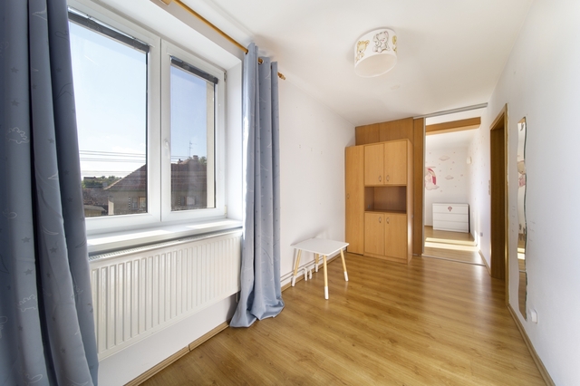 Celé 1.patro prošlo kompletní modernizací. Ozdobou kuchyně je nová kuchyňská linka s novými spotřebiči s krásnými výhledy jak na zahradu- Východ a tak i dvůr domu - Jih, jídelní stůl a spíž. Všude jsou instalovány nová plastová okna, nové rozvody vody, elektřiny, odpadů, nové podlahy, nová koupelna se sprchovým koutem a WC. Další místnostmi je prostorná ložnice s vestavěými skříněmi, obývací pokoj, pracovna a také dva samostatné dětské pokoje.