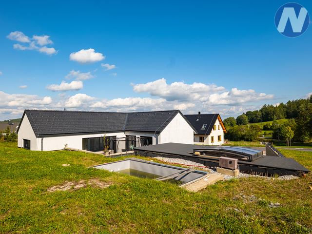 Ve výhradním zastoupení majitele nabízím k prodeji krásný rodinný dům v klidné lokalitě na okraji obce Vacov. Jednopodlažní, nízkoenergetický dům má dispozici 5+1 s podlahovou plochou 135 m² a nadstandartním pozemkem o celkové rozloze 1546 m². Dům je hezky a hlavně prakticky řešen. Velký obývací pokoj, ložnice, dva dětské pokoje, pokoj pro hosty nebo pracovna, technická místnost, samostatná šatna a dvě koupelny s WC. U domu je postavená zděná budova o zastavěné ploše 53 m², kterou lze využívat jako sklad, dílnu nebo garáž. Dům byl postaven z kvalitních materiálů – betonová střešní krytina, zateplení stropu foukanou pěnou, dřevo hliníková okna a dveře s trojskly, zateplení domu, vinylové podlahy. V celém domě je podlahové topení, o vytápění i ohřev vody se stará výkonné tepelné čerpadlo. Kombinace těchto prvků zaručuje energeticky úsporný provoz a velmi nízké provozní náklady. Kolaudace domu v roce 2022. Na zahradě najdete zapuštěný bazén se zastřešením a vlastním vyhříváním, které zajišťuje také tepelné čerpadlo. Vacov leží v podhůří Šumavy, mezi kopci a lesy. Čistý vzduch, klid a minimum hluku – ideální prostředí pro rodiny i všechny, kdo hledají odpočinek od městského shonu. Obec má základní občanskou vybavenost, město Vimperk je vzdálené 15 km a Strakonice 20 km. Okolí nabízí množství turistických i cyklistických tras, naučné stezky a v zimě nedaleký lyžařský areál Zadov. Díky nadmořské výšce kolem 730 m se můžete těšit na příjemné léto a krásné výhledy. Rád Vás nemovitostí provedu na osobní prohlídce a dále pomůžu zajistit nejvýhodnější způsob financování.
