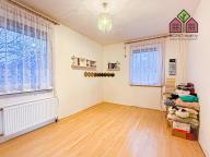 Přízemí domu je tvořeno z jeho obytné části s dispozicí 3+1, která se sestává z velice prostorného obývacího pokoje, kuchyně, ložnice, dětského pokoje, koupelny, toalety, předsíně a vstupních chodby. Obývací pokoj je skutečně velice prostorný a pohodlně pojme veškerý potřebný nábytek a vybavení. V kuchyni je situovaná praktická kuchyňská linka s množstvím pracovních ploch i úložných míst, dále také kuchyňské elektrospotřebiči a nesmí chybět ani jídelní část, která odděluje kuchyni od obývacího pokoje. Ložnice je standardních rozměrů, vybavená šatní skříní, manželskou postelí a nočním stolkem. Z této místnosti je pěkný výhled do okolí, tj. na oblast Litoměřic a při dobré viditelnosti je vidět také hora Říp. Pokoj je rovněž standardních rozměrů a případně může sloužit také jako pracovna. Jednotlivé pokoje nejsou průchozí a celkově velice praktická dispozice domu, vytváří příjemným pocit dobře organizovaného prostoru a soukromí. Koupelna je ve standardním provedení, umístěná při vstupní chodbě a je vybavená menší vanou, skříňkou a umyvadlem. Toaletu rovněž nejdeme při vstupní chodbě a je tedy samostatná. K dispozici je i půdní prostor, kde lze vybudovat další obytné místnosti.