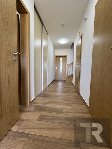 Dispozice domu: 1.NP - zádveří (3,25 m2), chodba (7,59 m2), obývací pokoj (33,01 m2), kuchyně (10,17 m2), technická místnost (4,47 m2), koupelna se sprchovým koutem a WC (3,11 m2), pracovna (8,07 m2); 2. NP - chodba (4,02 m2), dětský pokoj (11,78 m2), ložnice (15,94 m2), pokoj (15,97 m2), koupelna s vanou a WC (7,82 m2), komora (2,11 m2). K uskladnění např. sezonních věcí je k využití pochozí půda.