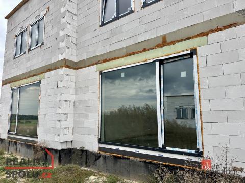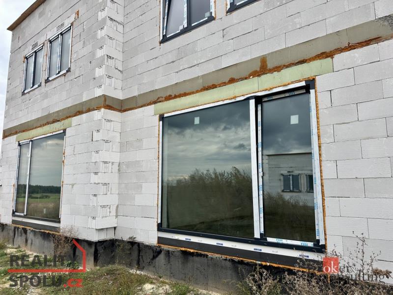 •. Dům je ve fázi hrubé stavby se střechou a okny, nyní se dodělávají vnitřky a čeká se na vydání Prohlášení vlastníka.