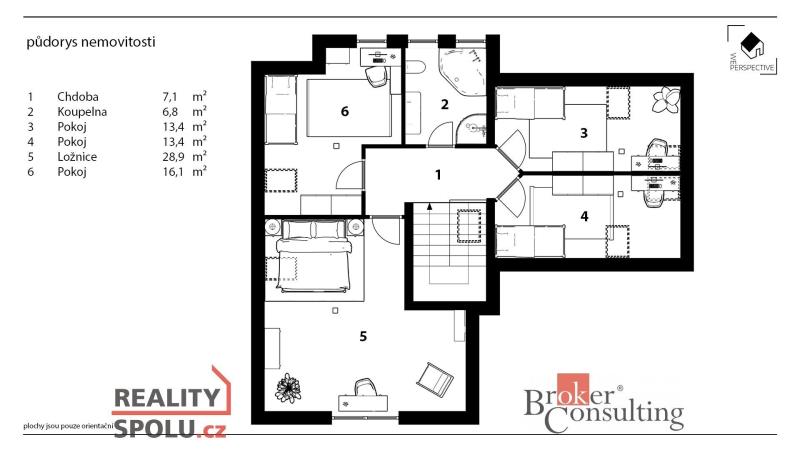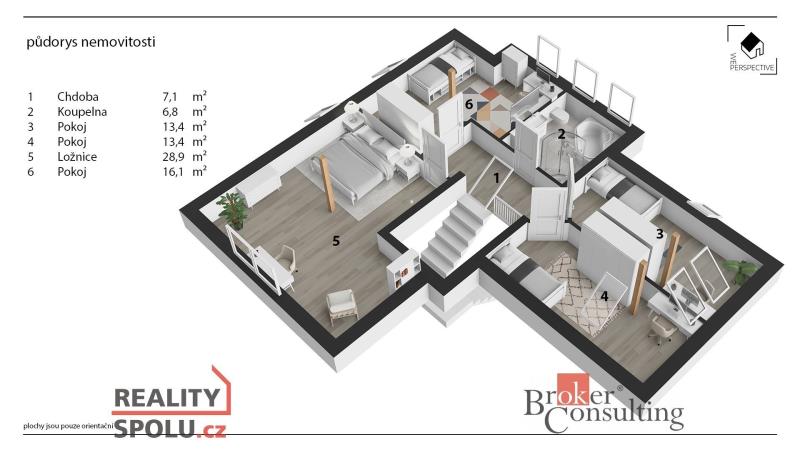 Dvoupodlažní dům o dispozici 6+kk stojí na pozemku o rozloze 1156 m2 s celkovou užitnou plochou 190 m2.