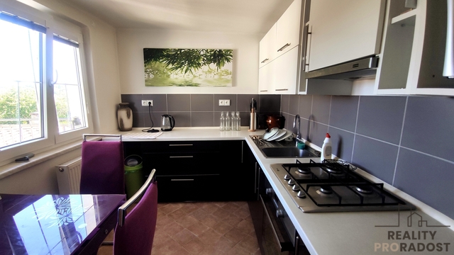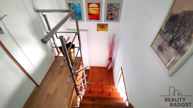 Nabízíme k prodeji prostorný řadový rodinný dům ve vyhledávané lokalitě Velké Meziříčí. Nemovitost zaujme svou variabilitou využití – disponuje dvěma samostatnými bytovými jednotkami, garáží, zahradou a možností podnikání. Ideální pro dvougenerační bydlení nebo úpravu na jeden velký domov. Hlavní informace: Celková plocha pozemku: 366 m² Zastavěná plocha s přístavky: cca 62 m² Zahrada: cca 120 m² Užitná plocha 1. patra: cca 80 m² Dispozice: Přízemí: garáž s elektrickými vraty, technická místnost a dvě další místnosti s přímým vstupem na zahradu 1. patro: byt 2+1, koupelna se sprchovým koutem, samostatné WC, vstup na zahradu 2. patro: byt 3+1 s balkonem, moderní kuchyně, koupelna s vanou, samostatné WC, vstup na půdu Dům je napojen na všechny inženýrské sítě (voda, elektřina, plyn, kanalizace). Vytápění zajišťuje plynový kotel. Možnosti využití: Dvougenerační bydlení nebo přestavba na jeden velký rodinný dům – v přízemí obývací zóna s kuchyní, v patře klidová část pro spaní. Možnost vybudování další bytové jednotky v prostorné půdě (3. patro). Přístavky u zahrady lze upravit pro podnikání – ideální pro kadeřnictví, manikúru, pedikúru, masáže či kancelář. Dům se nachází v klidné části města s výbornou dostupností na dálnici D1 a kompletní občanskou vybaveností v dosahu. Nemovitost nabízí široké možnosti využití – rodinné bydlení, dvougenerační dům, kombinace s podnikáním nebo investiční příležitost.