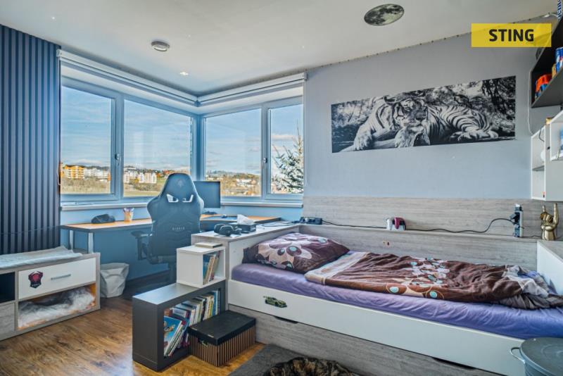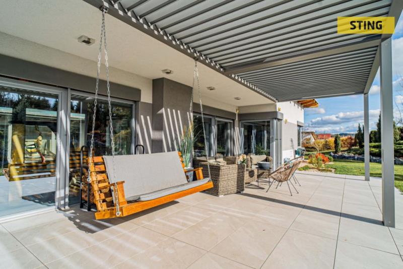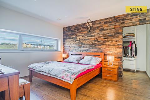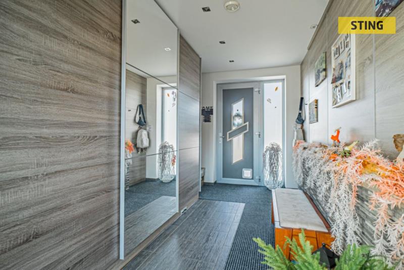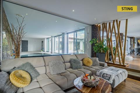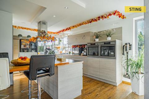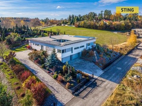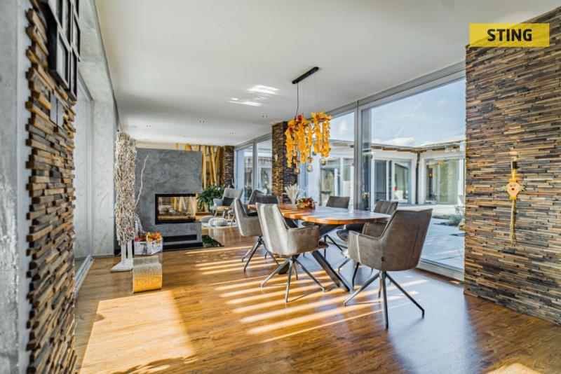 Nabízíme k prodeji unikátní rodinný dům situovaný na okraji Velkého Meziříčí nabízí výjimečné propojení přírody, soukromí a nadstandardního moderního bydlení. Umístěný v malebné krajině Vysočiny, přesto v bezprostředím dosahu města, je ideálním domovem pro náročnou rodinu hledající klid, komfort a kvalitní architekturu. Za vchodovými dveřmi domu je zádveřní hala, z které lze také sejít po schodech do prostoru garáží. Dům má celkem 5 samostatných pokojů, kuchyň se skrytou spíží, jídelnu, dále tzv. čítárnu - což je prostor mezi jídelnou a obývacím pokojem a vlastní obývací pokoj. Mezi jídelnou a čítárnou je umístěn krb, jehož krbová vložka je prosklena ze tří stran a je tak odkudkoli z domu vidět na plápolající oheň. Především v zimních měsících tento zapálený krb vytváří velmi romantickou a útulnou pohodovou atmosféru domu. Při návrhu dispozic domu byl brán zřetel na pohyb slunce po obloze a výsledkem práce projektantů jsou překrásně prosluněné nejvyužívanější prostory domu – kuchyň, prostor okolo krbu a obývací pokoj. Díky vhodně umístěnému otevřenému atriu dopadají sluneční podzimní a zimní paprsky i do chodeb uvnitř domu okolo atria a přispívají tak dále k tepelné pohodě. V domě je i velká místnost s vyhřívaným bazénem 3,7x8x1,5m, jenž má vlastní technologii pro automatické hlídání kvality vody. Uprostřed celého domu je umístěno nezastřešené atrium o rozměrech 9x10m. Za letních měsíců je výhled na otevřené nebe při zachování maximálního soukromí a bezpečí naprosto úžasný. Přes atrium je možné procházet skrze napříč celým domem a také samozřejmě k bazénu. V podlaze atria jsou dvě menší volné plochy, na kterých jsou osázeny okrasné trávy. Na pozemku v zahradě je postavena dřevěná chatka s přivedenou elektřinou. V chatce je elektrické řízení a ovládání čerpadla vrtu (hloubka vrtu je 51m) pro doplňování vody do dešťové nádrže (10m3), která je před domem. Do této nádrže je také svedena veškerá dešťová voda ze střechy domu. Na zahradě je instalován automatický závlahový systém Rainbird. Na střeše domu je instalována střešní fotovoltaická elektrárna o celkovém výkonu 30kW, která i s přebytkem pokryje 100% spotřeby el. energie celého domu. Fotovoltaické panely jsou téměř položené na střeše domu a nejsou tak z okolí vidět. Celkově jde o velice promyšlenou koncepci domu, který má velmi reprezentativní vzhled a který je situován v krásném prostředí přírody. Dům má tak vše, co si jen člověk může přát pro klidný a spokojený život. Do konce prosince 2025 nabízíme prostřednictvím našeho partnera úrokové sazby od 4,29 % p.a. Více informací Vám sdělí náš specialista na prohlídce.
