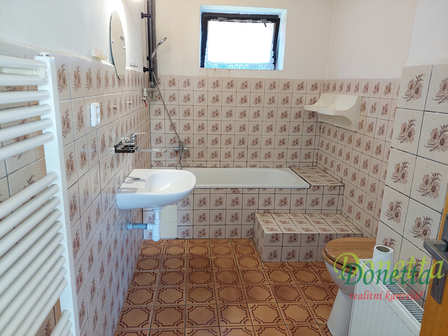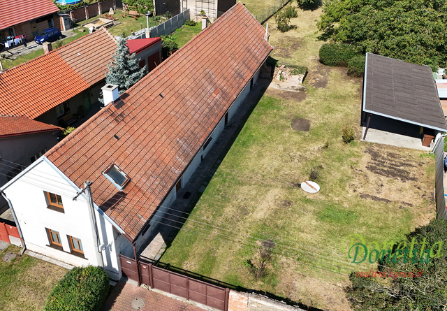 Nabízíme k prodeji rodinný dům s prostornou zahradou v obci Veltruby (Kolín cca 6 km). Jedná se o nepodsklepený (pouze malý sklípek s vodárnou) rodinný dům se sedlovou střechou. Dispozice: vstupní chodba s komorou a vstupem do sklepa. Z chodby je vstup do hlavního pokoje (cca 5,5 x 5,5 m), vstup do kuchyně a zvlášť do ložnice (cca 5,4 x 5,4 m). Dále navazuje koupelna s WC, technická místnost, prádelna a zadní vstup na zahradu. Celková užitná plocha činí cca 109 m2. Na obytnou část navazuje kotelna (cca 16,5 m2) a původní chlév (cca 29 m2). Podkroví je využívané jako půdní prostor. Na zahradě se nachází přístavek (pergola) s celkovou plochou cca 66 m2 (cca 5,1 x 12,9 m). Za domem se nachází prostorná zahrada využívaná jako sad. Celková výměra pozemku činí 1719 m2. Do domu je zavedena elektřina 220/380 V, vytápění je zajištěno poloautomatickým kotlem na tuhá paliva + elektrokotel, ohřev vody elektrickým bojlerem. Na pozemku se nachází studna (voda zavedena do domu) a aktuálně vybudována nová přípojka vody. Odpady jsou svedeny do obecní kanalizace. V domě jsou novější omítky i rozvody elektřiny (nový rozvaděč), nové rozvody topení, podlahy, plastová okna. Před domem se nachází zastávka autobusu, vlaková zastávka cca 750 m. V obci se nachází základní škola (1. stupeň) potraviny, školka, obecní hospoda a kavárna. Nedaleko se nachází nájezd na dálnici D11. Dům je možné užívat jak k bydlení, tak i jako rekreační objekt. Cena činí 5.490.000,- Kč. Se zajištěním financování Vám případně rádi pomůžeme.