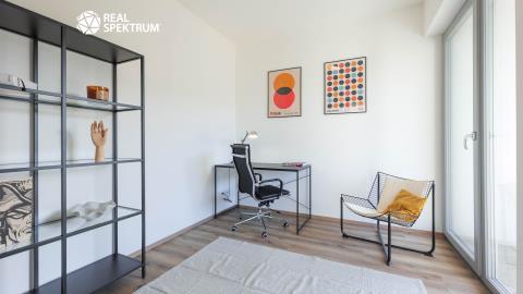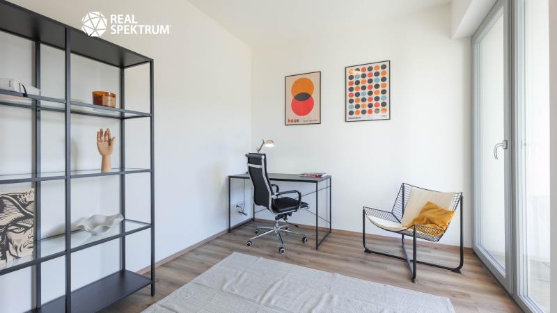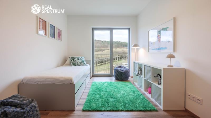 1.NP: hala (8,5 m²), obývací pokoj s kuchyňským koutem (32,3 m²) a vstupem na terasu (15,3 m²), pokoj (15,4 m²), pokoj (11,6 m²), ložnice (19,3 m²) s terasou (4,3 m²), koupelna s WC (5,7 m²)