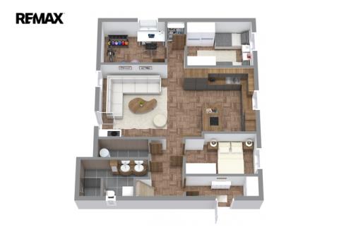 • V suterénu samostatná jednotka 2+kk s vlastní koupelnou s WC, plocha jednotky cca 58 m2.