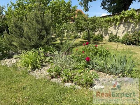 Zahrada s pečlivě udržovaným trávníkem, květinovými záhony, altánem a bazénem vytváří soukromou oázu klidu. Část pozemku lze po projednání s příslušnými úřady využít jako samostatnou stavební parcelu – ideální jako investice do budoucna.