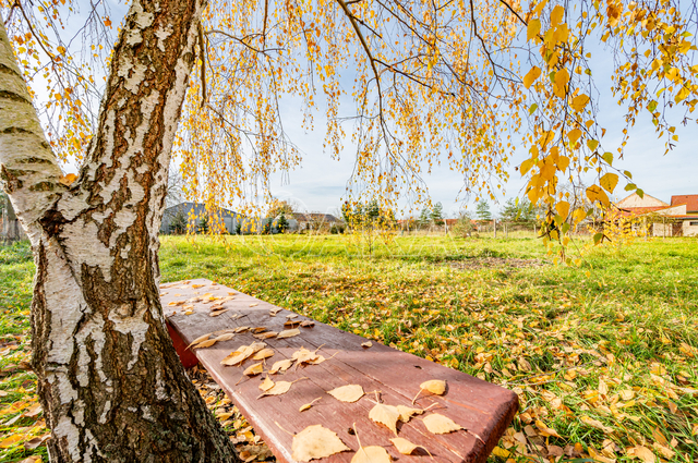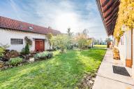 Zahrada je rozdělená do dvou částí. Přední část u domu je osázena okrasnými rostlinami, slouží zejména pro relax a potěchu oka. V této části zahrady se nachází garáž, hospodářská budova a studna. Druhá část zahrady nabízí dostatek prostoru pro zahradničení i volnočasové aktivity, zákoutí s posezením a několik vzrostlých stromů.