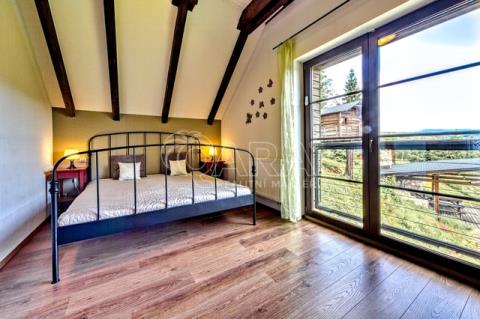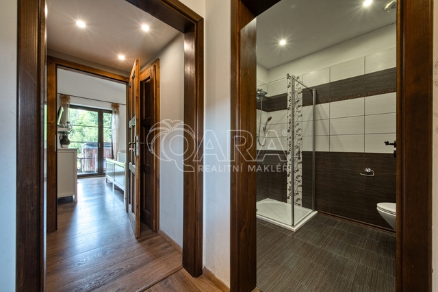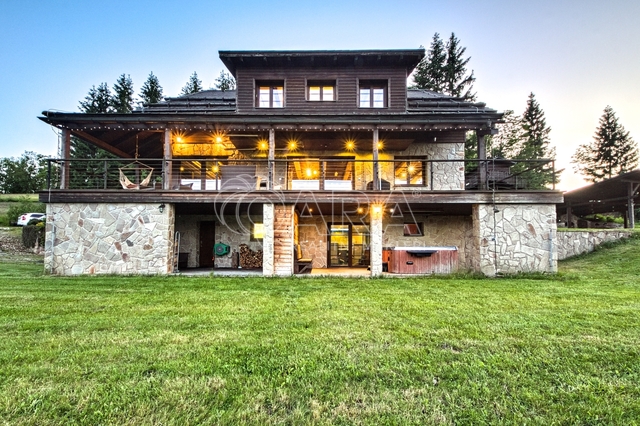 Nabízíme ke koupi exkluzivní horskou rezidenci ve vyhledávané lokalitě Vrchlabí, přímo mezi skiareály Bubákov a Herlíkovice. Dům o dispozici 7+kk je doplněn o samostatný apartmán 2+1 a nabízí celkovou užitnou plochu 568 m². Nachází se na prostorném pozemku o rozloze 4 087 m² a je nabízen kompletně vybavený, připravený k okamžitému užívání. Co na této nemovitosti oceníte nejvíce je naprosté soukromí, klid a nádherné výhledy. Interiér je řešen velkoryse s důrazem na komfort a prostor, k dispozici je vnitřní i venkovní wellness zóna se saunou a vířivkou, prostorná terasa s posezením, venkovní ohniště a praktické zázemí šatny a lyžárny. Parkování je možné přímo na pozemku. V zimní sezóně je smluvně zajištěno parkování níže pod rezidencí naproti penzionu Ranč (2 parkovací místa) a k dispozici na residenci je i sněžný skútr, který je součástí prodeje. Vrchlabí, často nazývané branou do Krkonoš, nabízí ideální kombinaci městské občanské vybavenosti a přímého kontaktu s přírodou. V zimě oceníte blízkost sjezdovek, v létě zase nespočet turistických a cyklistických tras v okolí. Pro více informací nebo domluvu prohlídky nás neváhejte kontaktovat.