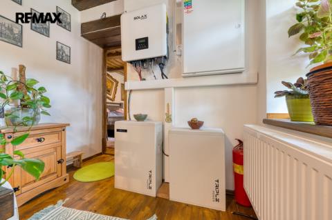 Dům je vybaven moderním fotovoltaickým systémem s bateriovým úložištěm. Solární panely PHONO SOLAR s výkonem 8,19 kWp, hybridní střídač Solax G4 a bateriový systém o kapacitě 11,6 kWh v kombinaci s kvalitními stavebními materiály a masivem, do kterého je východní část stavby vybudována, dělá dům neuvěřitelně energeticky úsporný.