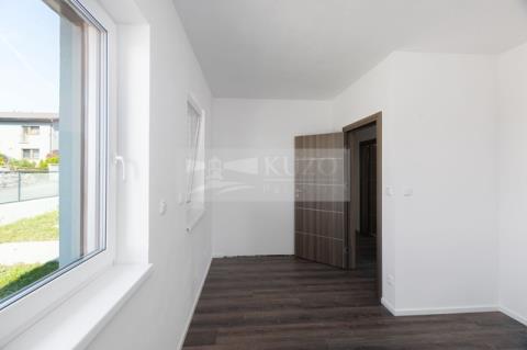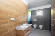 V levé části domu je přístupný další pokoj, koupelna sprchovým koutem a toaletou, navíc samostatné WC, dále velkoryse řešený obývací pokoj s kuchyňským koutem. Na obývací pokoj navazuje venkovní terasa s jiho-západní orientací.