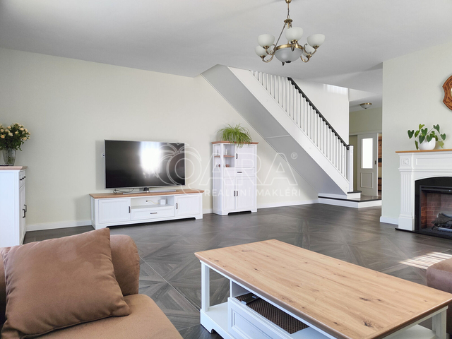 Dominantou přízemí je velký obývací pokoj s krbem a velkými okny, který je vkusně rozdělen na obývací, kuchyňskou a jídelní část. Krb dodává prostoru velmi útulný nádech. Pět neprůchozích pokojů zaručují dostatek soukromí pro početnou rodinu. V přízemí se také nachází spíž, hlavní ložnice, samostatné WC, zádveří s přímým vstupem do garáže a technické místností. Za zmínku stojí hlavní ložnice s vlastní koupelnou a šatnou, s výstupem na zastřešenou terasu orientovanou na západ. Druha terasa se nachází v prvním patře hned nad hlavní ložnici a je přístupná ze společné chodby. První patro tvoří 3 ložnice, z toho jedna je využívaná jako pracovna. Dále jsou zde velká koupelna a prostorná komora.