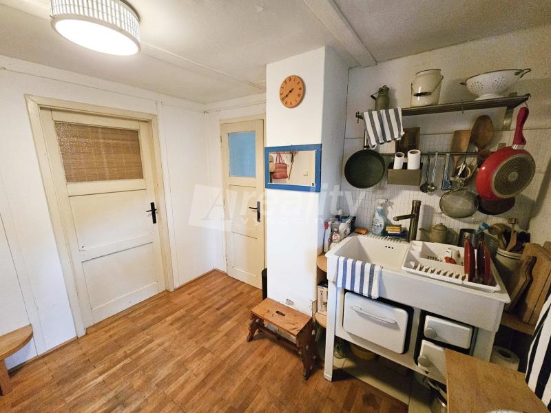 Zprostředkujeme Vám ve výhradním zastoupení prodej venkovské smíšené stavby s užitnou plochou 85 m2 v části obce Vystrkov u Humpolce. Dříve rekreační objekt, dnes rozšířen k možnému trvalému žití. Součástí je pozemek o celkové ploše 726 m². Domek o jednom podlaží nabízí 6 stylově zařízených místností a je napojen na vlastní studnu, elektřinu a přípojku na plyn. V kuchyní se nachází kamna, která slouží nejen na vaření, ale také se postarají o teplo domova. Podlahy jsou v kombinaci renovovaných dřevěných parket a dlažby. Zahrada oplývá ovocnými stromy, zahradním domkem, přistavěnou pergolou se zahradním nábytkem a je zde dostatečný prostor pro pěstování další zeleně. K nastěhování ihned, případně lze přizpůsobit dle individuálních představ pro ideální a pohodlné bydlení. Veškerá občanská vybavenost v Humpolci, který je vzdálen 5 minut autem. Výborná dostupnost na D1. Domluvte si prohlídku této jedinečné nemovitosti!