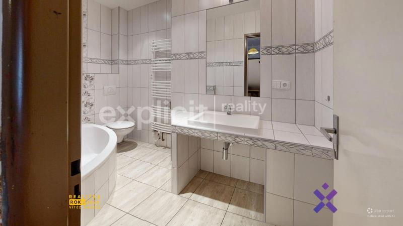 Rodinný dům o užitné ploše 162 m² je dispozičně řešen jako 5+kk. Vstup do domu vede přes prostornou halu s chodbou, odkud se vstupuje do hlavní obytné části – kuchyně s jídelním koutem, obývacího pokoje, ložnice a dvou dalších pokojů. Dále jsou k dispozici dvě koupelny, samostatné WC, komora, sklad a vstup do podkroví. Podkroví nabízí rozsáhlý půdní prostor vhodný k vybudování další obytné části nebo jako praktické úložné zázemí.