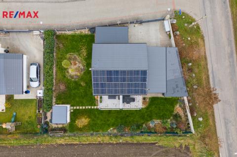 Dovoluji si Vám nabídnout moderní rodinný dům z roku 2016/2017, který splňuje vysoké nároky na energetickou úspornost, kvalitní provedení a klidné rodinné bydlení v oblíbené lokalitě Záryby–Martinov. Nemovitost byla postavena v pasivním režimu se státní dotací Zelená úsporám (vázanost dotace na 10 let) a disponuje průkazem PENB v třídě A podle tehdejší legislativy. Dům o dispozici 5+kk a výměře 123 m² stojí na pozemku 530 m² a nabízí velmi promyšlenou konstrukci: sedlovou plechovou střechu, cihlové zdivo Heluz 25 a kvalitní zateplení 20 cm polystyrenu. Plastová okna s trojskly jsou doplněna ochrannými sítěmi, v horním patře vnitřními žaluziemi, v celém přízemí a ve dvou ložnicích v horním patře navíc elektricky ovládanými roletami. V interiéru se střídají dlažby a laminátové podlahy. Energetické řešení domu je jedním z jeho největších benefitů. Veškeré vyrobené teplo je akumulováno do bojleru o objemu 123 litrů. O vytápění se stará kombinace radiátorů, klimatizace, peletových kamen s napojením na bojler a samozřejmě také rekuperace vzduchu. Klimatizace byla instalována v roce 2023. Celý systém doplňuje moderní fotovoltaika z roku 2024 — 16 solárních panelů o celkovém výkonu 8kWh , baterie 11,6 kWh a wallbox 11kWh, vše od značky Solax. Díky tomu činily celkové roční provozní náklady za minulý rok pouhých 22 000 Kč, a to včetně dobíjení auta. Náklady na vodu jsou přibližně 500 Kč na dospělou osobu. Dům je napojen na obecní vodu, elektřinu a tlakovou kanalizaci. Internet je řešen bezdrátově, plyn v lokalitě není. Parkování je komfortní — na vlastním pozemku lze zaparkovat 4 až 5 vozidel, další místa jsou k dispozici před domem. Orientace domu na východ, jih a západ zajišťuje dostatek světla po celý den. Součástí zahrady je také praktický zahradní domek, terasa, pergola a přístřešek na auta vč. dalšího úložného prostoru. Z interiéru zůstává plně vybavená kuchyňská linka a vestavěné skříně. Velkou přidanou hodnotou jsou také velmi dobré sousedské vztahy v celé ulici — funguje zde aktivní sousedská skupina. Pokud hledáte úsporný útulný dům s velmi nízkými provozními náklady a příjemnou komunitou, toto je nabídka, kterou rozhodně doporučuji vidět osobně. Prohlídky se budou konat po předchozí telefonické či e-mailové dohodě. Dovolujeme si upozornit, že v případě více vážných zájemců může být nemovitost prodána nejlepší nabídce.