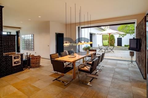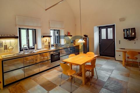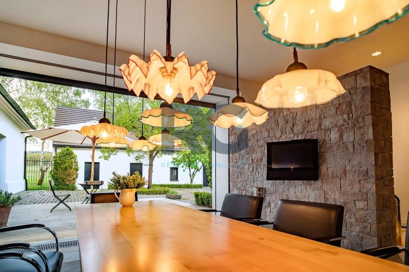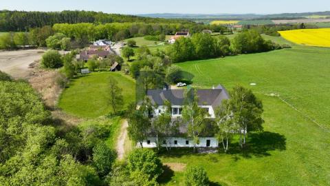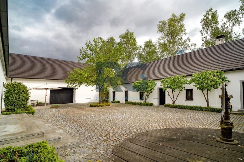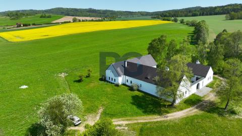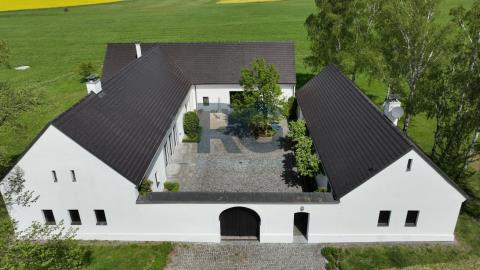 Exkluzivně Vám nabízíme k prodeji jedinečnou nemovitost - komplex 2 historických domů o výměře 1656 m2 s rozsáhlými pozemky o rozloze 75615 m2. Nemovitost se nachází v malebné lokalitě Medenice, obec Žďár, obklopené Píseckými horami a přírodní památkou Zelendárky. Usedlost s uzavřeným dvorem prošla nákladnou a odbornou rekonstrukcí, skládá se ze dvou obytných budov a garáže. Hlavní budovu o výměře podlahové plochy 230 m2 tvoří dva oddělené obývací pokoje s krbem a otevřenými stropy do štítu, z nichž je možné vyjít velkými prosklenými dveřmi na venkovní prostranství. Dále je zde kuchyně s kachlovým kamny a jídelní částí. Kuchyň je plně profesionálně vybavena spotřebiči, varnou deskou, troubou, myčkou, atd., a je velkými prosklenými dveřmi otevřená terase s dřevěnou podlahou a elektricky ovládanou markýzou, případně chodbou do zahrady. Podlahové vytápění a dobře navržená kachlová kamna poskytují teplo a atmosféru. Přípravná kuchyň je oddělena od společenské místnosti a je se zabudovanou chladničkou. Následuje šatna, úklidová místnost (prádelna) a toaleta. Soukromí majitelů zajišťují dvě samostatné ložnice s vlastními koupelnami a toaletami přístupné z každé jedné ložnice. Druhý dům se samostatným vchodem je o podlahové ploše 150 m2 a tvoří ho vybavená kuchyně s jídelní částí, obývací prostor s ložnicí a pracovnou, a koupelna s toaletou. Navazující sauna se sprchou a východem na louku za domem nabízí v zimním období ochlazení ve sněhu. Z prostranství dvora je možnost využít samostatné toalety, dále se zde nachází technická místnost domu. Všechna okna a dveře jsou zajištěna centrálním zastíněným a zabezpečením venkovními žaluziemi. Zabezpečení zajišťuje i moderní poplašný systém. Na usedlost navazují pozemky a pastviny o celkové rozloze přes 75000 m2. Tato krásná malá lokalita se nachází po levé straně při cestě ze Žďáru do Nové Vsi. Směrem východním se rozprostírají Písecké hory s Vysokým Kamýkem (626,8 m n.m.). Severovýchodně až jihovýchodně od vesnice se nachází soustava rybníků chráněných jako přírodní památka Zelendárky. Jedná se o nemovitost pro náročné klienty, vyžadující absolutní soukromí pro trvalé či rekreační bydlení. Usedlost se prodává s kompletním vybavením. Pro více informací a prohlídku nemovitosti mě neváhejte kontaktovat.
