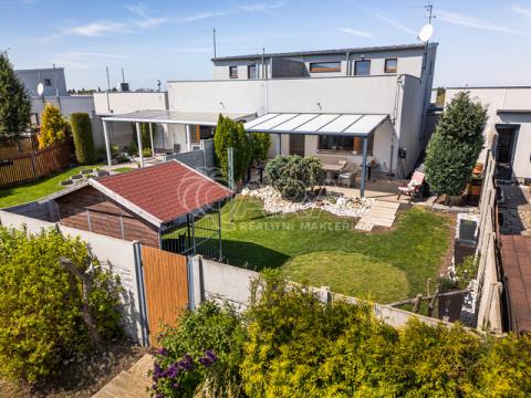 Hledáte moderní bydlení s dostatkem prostoru pro rodinu? Chcete dům se zahradou, která je tak akorát a kde si bezpečně můžou hrát vaše děti, zatímco vy se věnujete vašim přátelům? Pokud právě takový dům hledáte, mám pro vás skvělý tip. Třípatrový dům o dispozici 5+kk a podlahové ploše víc než sto padesát pět metrů čtverečních jen kousek za hranicí Prahy, v Zelenči. Dominantou celého domu je obývací pokoj o velikosti 42 metrů čtverečních, s úžasným výhledem do zahrady a přímým vstupem na terasu. Díky vysokému plotu si na zahrádce o velikosti 139 metrů čtverečních můžete užívat nerušeného soukromí nebo si užít pohodu s přáteli, třeba při grilování. V kuchyňské části domu najdete kompletně vybavenou kuchyňskou linku s plynovým sporákem, horkovzdušnou i mikrovlnou troubou, vestavnou lednicí s mrazákem a myčkou. Kuchyně díky své velikosti nabízí také dostatek úložných prostor. V horním patře domu se nachází velká manželská ložnice s další terasou. Ve středním patře mohou být dva dětské pokoje - aktuálně jsou ale spojené v jeden velký pokoj. Na patře se dále nachází koupelna s vanou. Pokoj pro hosty s druhou koupelnu se sprchovým koutem a komoru pak najdete v nejnižším podlaží domu. Z pokoje pro hosty je možné se přes venkovní schodiště projít na zahrádku. V domě jsou instalovány tři velké vestavěné skříně. Dále se v domě nachází garáž, před domem je další parkovací místo, na vlastním oploceném pozemku. Střecha domu je plechová, okna dřevěná eurookna, dodatečně zvenku opatřená opláštěním. Dům je napojen na obecní vodovod a kanalizaci, vytápění je řešeno vlastním plynovým kondenzačním kotlem. Energetickou třídu uvádíme zatím G, průkaz je právě zpracováván. Náklady na spotřebu plynu na vytápění a vaření jsou 6 000 Kč měsíčně. Dům z roku 2009 se nachází na kraji obce, takže ať jsou vaším koníčkem výlety na kole nebo běh, tady jste na správném místě. Přímo v Zelenči se nachází tenisové kurty, ve tři kilometry vzdálených Mstěticích pak najdete oblíbené golfové hřiště. V obci se dále nachází soukromá mateřská školka, základní škola, pošta, restaurace i obchod s potravinami. Dopravní dostupnost do Prahy zajišťují autobusy směrem na metro Černý Most. Velkou výhodou je ale vlak, který vás ze Zelenče za 25 minut odveze do samotného centra Prahy, na Masarykovo nádraží. Autem jste pak na okraji Prahy za pár minut - na městský okruh je to méně než 7 kilometrů. Je tohle ta pravá nemovitost pro vás? Zavolejte mi a pojďme to spolu zjistit. Rád se s vámi domluvím na prohlídce.