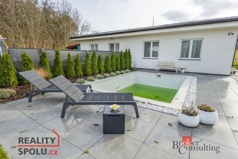 Nabízíme k prodeji moderní rodinný dům o dispozici 4+kk a obytné ploše 102,3m², který byl postaven v roce 2021 v obci Žižice – Drnov. V domě se nachází obývací pokoj s kuchyňským koutem, ložnice, dětský pokoj, pracovna, koupelna, samostatné WC, komora, kotelna, terasa. Součástí domu je krásná prostorná zahrada o výměře 463,7 m², která je ideálním místem pro relaxaci i volnočasové aktivity. Najdete zde betonový bazén obložený mozaikou, vestavěný venkovní gril s lednici a terasu z bambusových prken. Dům se nachází v klidné části obce, s výbornou dostupností do Slaného, Kladna i Prahy. Lokalita nabízí pohodlné bydlení v příjemném prostředí, ideální pro ty, kteří hledají spojení venkovského klidu a dobré dostupnosti měst. Těšíme se na prohlídky