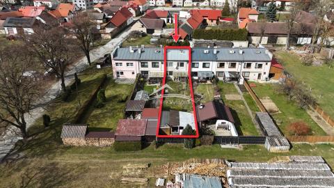 Nabízíme k prodeji cihlový řadový rodinný dům se dvěma bytovými jednotkami, který se nachází na okraji obce směrem na Přibyslav. Díky svému dispozičnímu řešení je ideální pro dvougenerační bydlení nebo kombinaci bydlení a pronájmu. Dům má dvě nadzemní podlaží, přičemž v přízemí se nachází bytová jednotka o dispozici 1+kk a ve 2. nadzemním podlaží jednotka o dispozici 3+1. Nemovitost byla kolaudována přibližně v roce 1974 a je z poloviny podsklepená. Dům je v původním, průběžně udržovaném stavu. Okna jsou kombinací dřevěných a plastových s izolačním dvojsklem. Vytápění zajišťuje kotel na tuhá paliva (pelety) zn. EkoScroll, instalovaný v roce 2023, který již splňuje aktuální emisní normy. Ohřev vody je řešen elektrickým bojlerem. Dům je napojen na obecní vodovod, kanalizaci a elektřinu (220/400 V). Rozvody vody a odpadů jsou v plastu, elektroinstalace je původní v hliníku. U domu se nachází také plynová přípojka. V každém podlaží je k dispozici koupelna a samostatné WC, celkem tedy dvě koupelny a dvě WC, přičemž koupelna ve 2. nadzemním podlaží prošla rekonstrukcí. Součástí domu je garáž v přízemí. Na pozemku za domem se nachází dřevník s dílnou a zastřešené venkovní posezení. Velkou výhodou jsou také úložné prostory v podobě několika komor a prostorné půdy. Dům je středový, což přispívá k nižším nákladům na vytápění. V obci je k dispozici základní občanská vybavenost, konkrétně obchod a mateřská škola. Kompletní služby se nachází v nedaleké Přibyslavi, vzdálené přibližně 3 km. Dům je ihned k dispozici k nastěhování. Financování je možné hypotečním úvěrem nebo stavebním spořením. Průkaz energetické náročnosti budovy (PENB) je aktuálně ve zpracování, proto je nemovitost prozatím uváděna ve třídě G.