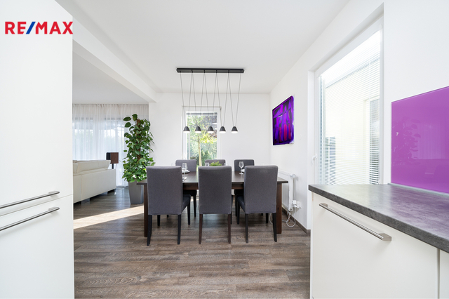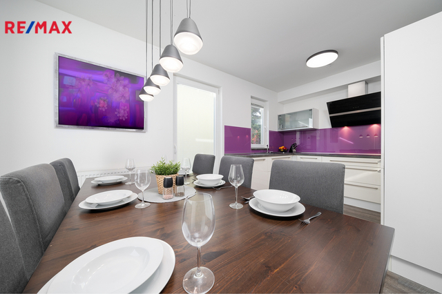 Exkluzivně nabízím k prodeji útulný a prostorný rodinný dům o dispozici 4+kk s celkovou užitnou plochou cca 113 m² a zahradním domkem o velikosti cca 14 m², nacházející se v klidné a příjemné obci Zlončice, okres Mělník. Obec leží pouhé 4 km od Kralup nad Vltavou a díky výborné dopravní dostupnosti se na dálnici D8 dostanete během 5 minut. Do Prahy – OC Letňany pak dojedete autem zhruba za 15 minut. Ideální kombinace venkovského klidu a pohodlného spojení s hlavním městem. Celková plocha pozemku činí 550 m² (zahrada + zastavěná plocha). Dům je dřevostavbou sendvičového typu z roku 2007, jedná se o dvojdům bez podsklepení, rozdělený do dvou obytných podlaží. Dispozice domu: V přízemí se nachází světlý a prostorný obývací pokoj s jižní orientací, který navazuje na plně vybavený kuchyňský kout. Z obývacího pokoje je přímý vstup na terasovou část (cca 30 m²) a zahradu, ideální pro relaxaci i rodinné posezení. Dále zde najdete samostatnou toaletu, technickou místnost, prostornou chodbu a šatnu. V patře se nachází tři samostatné pokoje a koupelna s vanou. Součástí horního podlaží je i vestavěná skříň s dostatkem úložného prostoru. Technické informace: V roce 2018 proběhla rekonstrukce střechy včetně výměny střešní krytiny, což zlepšilo izolační vlastnosti domu. Dům je napojen na obecní vodovod, elektřinu a kanalizační síť (přes vlastní čerpadlo do ČOV). Vytápění je řešeno elektrokotlem umístěným v technické místnosti. Plyn není zaveden. Energetický štítek (PENB) bude doložen před prodejem, proto prozatím uvádíme třídu G. Na pozemku se nachází samostatný zahradní domek/sklad o velikosti cca 14 m² a parkovací stání na vlastním pozemku. Lokalita a okolí: Zlončice jsou vyhledávanou lokalitou díky své přátelské sousedské komunitě, naprostému klidu a bezpečné atmosféře ideální pro rodinný život. V okolí najdete školku, školu, obchody, sportoviště i krásnou přírodu. Místo, kde se budete opravdu cítit doma. Rodinný dům ve Zlončicích představuje ideální volbu pro ty, kdo hledají pohodové rodinné bydlení v blízkosti Prahy, s veškerým komfortem, klidem a soukromím. V případě zájmu o prohlídku mě neváhejte kontaktovat – rád vám dům osobně představím.