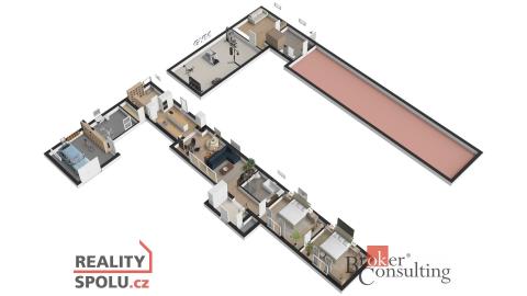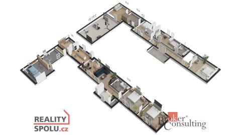 Exklusivně nabízíme komfortní bydlení severně od Prahy, v obci Zlonín, Praha - Východ. Prostorný dvoupatrový dům, který lze řešit i pro vícegenerační bydlení, se nachází v samotném centru obce, přitom nabízí absolutní soukromí. Pozemek je rovinatý o celkové rozloze 735 m2. Zahrada je příjemným místem pro odpočinek či vyžití dětí. Dům má celkovou plochu ve dvou nadzemních podlaží 291 m2. V současné době, je užíváno 218,8 m2 (145,5 m2 přízemí) a část domu v podkroví 73,28 m2. Druhá část podkroví (72,2 m2) nyní slouží majitelům jako půda, je zde připravena studie pro výstavbu další obytné části. To již bude na novém majiteli, aby si realizoval podle vlastních představ a nebo bude sloužit stejně jako dosavadním majitelům jako půda. Půdorysy nemovitosti jsou vypracované dle skutečného stavu, je i náhled na případný budoucí stav.