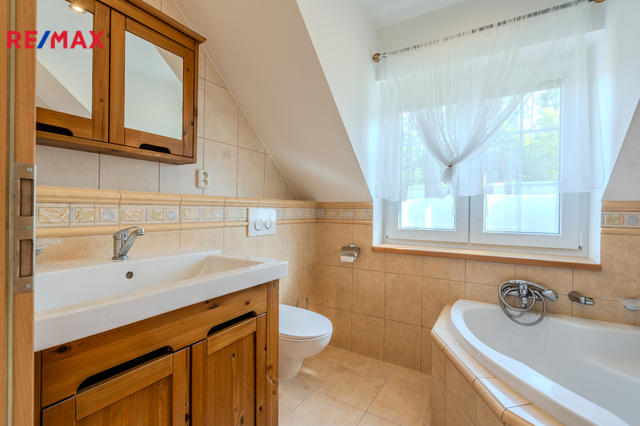 Suterén je s garáží a technickými místnostmi, jedna z místností sloužila jako sauna. K dispozici je i prostorná pochozí půda cca 20m2.