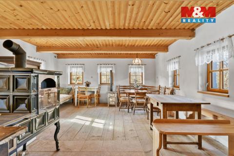 Nabízíme k prodeji zděný rekreační objekt, po úpravě využitelný jako rodinný dům, v malebné osadě Černá, vzdálené přibližně 3 km od Lomnice nad Popelkou. Nemovitost se nachází ve velmi klidné lokalitě na pomezí Českého ráje a Podkrkonoší. Nabízí krásnou přírodu, kopcovitý terén a nádherné výhledy na Kozákov, Jizerské hory a Krkonoše. Dům o užitné ploše 100 m² má dispozici 3+kk s možností úpravy na 4+kk, dvě nadzemní podlaží a klenbový sklípek. Nachází se na pozemku o výměře 971 m², který poskytuje soukromou zahradu i dostatek prostoru pro parkování. Součástí prodeje je také samostatná zahrádka přes cestu a les v docházkové vzdálenosti. Nemovitost je v dobrém stavu a je vhodná k okamžitému užívání i k případným úpravám dle vlastních představ. Klidné místo s dobrou dostupností do města. Pro více informací a sjednání prohlídky kontaktujte makléře.