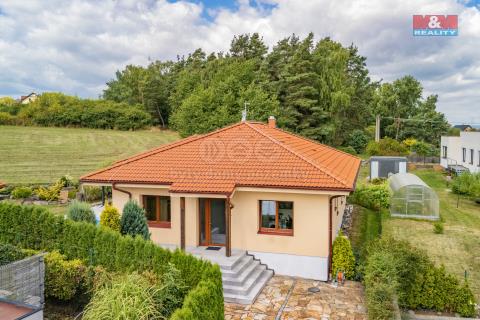 Na prodej přízemní rodinný dům v klidné části obce Kyšice u Plzně. Tento samostatně stojící dům na polosamotě nabízí klid a soukromí s nádherným výhledem do polí. Užitná plocha činí 118 m² a zahrada o rozloze 515 m² zahrnuje vyhřívaný bazén tepelným čerpadlem, terasu a pohodlné posezení. Interiér domu je promyšleně dispozičně řešen: prostorná vstupní chodba, dvě šatny, technická místnost, dvě samostatné ložnice, koupelna s walk-in sprchovým koutem a toaletou, oddělená toaleta a obývací pokoj propojený s kuchyňským koutem. Z obývacího pokoje je přímý vstup na terasu. Dům je vybaven podlahovým vytápěním a tepelným čerpadel. Ideální pro rodinu hledající pohodlný a moderní domov v krásném prostředí. S financováním Vám rádi zdarma pomůžeme. Těšíme se na Vás na prohlídce.