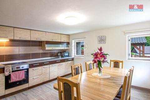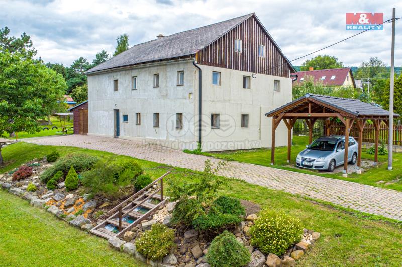 Nabízíme k prodeji prostorný rodinný dům o dispozici 6+1, který se nachází v klidné části obce Jílové u Děčína na udržovaném pozemku o celkové výměře 903 m². Zastavěná plocha domu činí 120 m². Dům po částečné rekonstrukci má tři nadzemní podlaží – dvě plně obytná a třetí slouží jako půda s možností další vestavby. Objekt je zčásti podsklepen. Vytápění zajišťuje úsporný kondenzační plynový kotel. Dům je napojen na veřejný vodovod. Konstrukce je ze smíšeného zdiva, střecha je v dobrém stavu. Na pozemku se nachází přístavba, původně garáž, která byla přestavěna na společenskou místnost. Zahrada je pečlivě udržovaná, s ovocnými stromy, fóliovníkem a venkovním bazénem. K dispozici je navíc možnost užívání sousední parcely, například pro zahradničení nebo relaxaci. Nemovitost je ideální pro rodinné bydlení v klidné lokalitě s dobrou dostupností do Děčína i okolních měst.