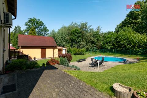 Nabízíme k prodeji rodinný dům 5+kk s výjimečně velkým pozemkem 3 348 m2 vhodným k další zástavbě. Samotný dům se zastřešenou terasou a bazénem prošel dobře promyšlenou rekonstrukcí a lze ho využít jako dvougenerační dům, ale je i ideální volbou pro rodiny hledající komfortní a klidné bydlení s veškerými službami v dosahu. Díky skvělé lokalitě a velikosti pozemku je tato nemovitost vhodná i jako investiční příležitost nebo sídlo firmy. Velkým bonusem je praktická dispozice domu, kde v přízemí tvoří srdce domu prostorný obývací pokoj propojený s kuchyní a vstupem na zahradu, v prvním patře pak najdete samostatné neprůchozí pokoje s vestavěným nábytkem na míru, koupelnu, WC. Samozřejmostí je klimatizace v pokojích a napojení na bezpečnostní systém. Dům je částečně podsklepený, k dispozici 2 garáže s elektrickými vraty a parkovací stání, dílna. Pro více informací kontaktujte makléře.