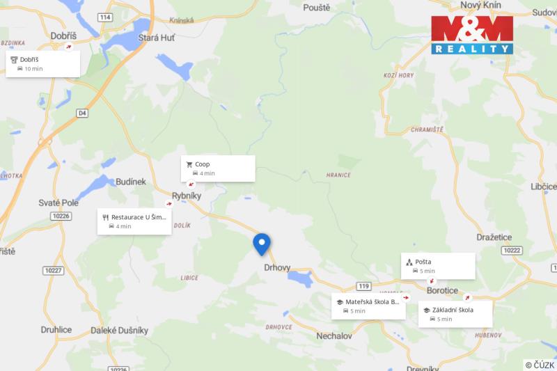 Prodej novostavby rodinného domu 5+kk v obci Drhovy. Spojeni tradičního tvaru a moderní technologie. Užitná plocha domu 140 m². Plocha pozemku 859 m². Dům je navržen jako velmi úsporný se zateplením obvodového pláště i střechy, okna trojskla. V celém domě je instalováno komfortní podlahové vytápění, které zajišťuje ideální klima a esteticky čistý interiér. Zároveň dům disponuje větráním s rekuperací. Kompaktní velikost zajisti nízké náklady na bydleni a zároveň nabízí dostatek prostoru. Velkoformátová okna propojují interiér se zahradou. Dům stoji na rovinatém pozemku, perfektní pro zahradu a bazén. Díky rychlému nájezdu na dálnici D4 jste v Praze do 30 minut, Dobříš je vzdálena pouhých 7 minut. Dům je situován na velkorysém místě na okraji obce. Odstup od okolní zástavby, tvořený málo frekventovanými cestami, vytváří kolem domu přirozený „ochranný pás“. Cesty slouží primárně pro místní obsluhu, takže provoz je minimální! Neváhejte nás kontaktovat pro více informací nebo prohlídky!