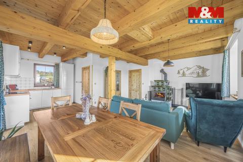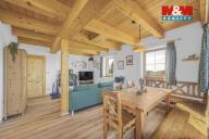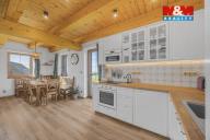 Nabízíme k prodeji stylovou horskou chalupu kolaudovanou jako rodinný dům o dispozici 5+kk, situovanou v klidné části obce Bělá u Liberka. Dům o užitné ploše 142 m² je novostavbou se dvěma nadzemními podlažími. Na pozemku o rozloze 3835 m² naleznete zpevněné parkování a dostatek prostoru pro odpočinek. V domě jsou dvě koupelny, jedna s vanou a druhá se sprchovým koutem. Podlahy jsou vinylové s podlahovým vytápěním, které je zajištěno tepelným čerpadlem a kachlovými kamny s výměníkem. Nemovitost je vybavena moderní kuchyňskou linkou se všemi spotřebiči. Technická místnost je vybavena akumulační nádrží, elektrický bojlerem a úpravnu pitné vody. Voda je zajištěna z vrtné studny, odpadní vody jsou řešeny biologickou čistírnou. Okna plastová s trojskly a sítěmi proti hmyzu. Dům je kompletně zateplený a čeká na finální nátěr fasády podle vkusu nového majitele. Ski areály Říčky a Zdobnice vzdálené 16 minut autem. Více informací u makléře.