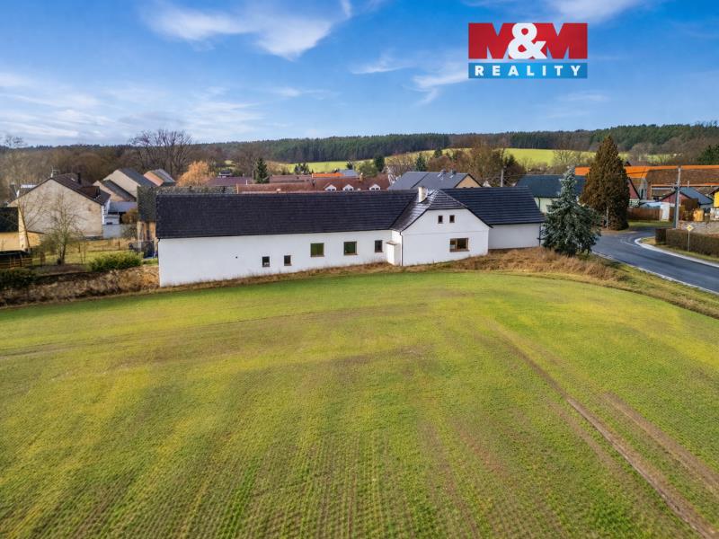 Dům s vlastním kusem přírody a zahradou až k řece – klidné bydlení nedaleko Plzně. Nabízíme k prodeji zrekonstruovaný rodinný dům o dispozici 4+1 ve Vodním Újezdu u Dobřan, situovaný na výjimečném pozemku o rozloze 5 355 m² sahajícím až k řece a poskytujícím soukromí i přímý kontakt s okolní přírodou. Nemovitost spojuje komfort moderního bydlení s atmosférou venkova – od uzavřeného dvora s pergolou pro příjemné posezení, bazénem až po rozlehlou zahradu ideální pro relaxaci, pěstování, chov zvířat či volnočasové aktivity. Součástí je také prostorná stodola v původním stavu s potenciálem pro dílnu, ateliér nebo další využití. Dům je napojen na vlastní studnu, vytápění zajišťují krbová kamna doplněná elektrickým kotlem. V Dobřanech se nachází základní škola i mateřská škola (cca 5 minut jízdy) a nájezd na dálnici D5 je dostupný přibližně do 10 minut autem směrem na Plzeň. Lokalita nabízí klidné bydlení v zeleni s výbornou dostupností města a kompletní občanskou vybaveností v dosahu.