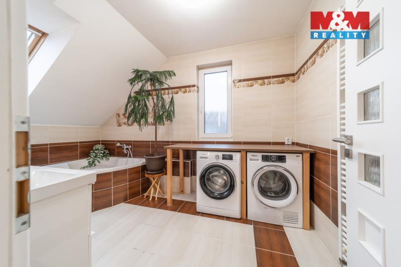 Nabízíme k prodeji rodinný dům o dispozici 5+1 s podlahovou plochou 148 m², stojící na rovinatém pozemku o celkové výměře 588 m², z čehož 491 m² tvoří okrasná zahrada se vzrostlými keři pro příjemné posezení. V přízemí domu se nachází předsíň s technickou místností, chodba, koupelna se sprchovým koutem a WC, komora, kuchyně s jídelním koutem a prostorný obývací pokoj s krbem na dřevo s výměníkem a vstupem na dvě terasy. Dále je zde menší ložnice či pracovna. V patře jsou tři samostatné pokoje, z nichž jeden má vstup na balkon, koupelna s vanou a místem pro pračku a sušičku, samostatné WC, komora a vstup na půdu. Dům je napojen na elektřinu, voda je z vlastní vrtané studny, odpady jsou svedeny do jímky. Vytápění zajišťuje podlahové topení v přízemí, radiátory v patře a krb s výměníkem. V současnosti probíhá jednání o připojení na tlakovou kanalizaci, vodovod a plynovod. Ráda poskytnu více informací.
