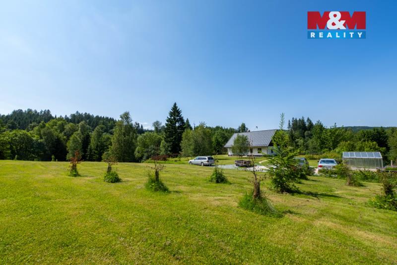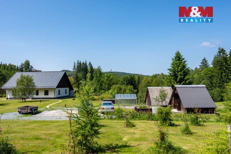 Prodej unikátní novostavby z roku 2025 s rozsáhlým oploceným pozemkem 8649 m², včetně dalších čtyř stavebních parcel (1253 m², 1107 m², 1192 m² a 782 m²) v lokalitě Čížkův mlýn, Nový Hrádek - Rzy. Dům o zastavěné ploše 150 m² v podhorském stylu stojí na vyvýšeném souboru parcel, oddělených lesem a terénem pro maximální soukromí. Součástí je dílna a 2 chatky. Přístup z obecní cesty (150 m od asfaltové silnice), pozemkem vede vlastní zpevněná cesta. Dům má 2 ložnice, obývací pokoj s HS portálem a nádherným výhledem, pracovnu, jídelnu, kuchyň, technickou místnost s WC a koupelnu s vanou i sprchou. Je postaven z nadstandardních materiálů, cihly s vnitřní izolací, VPC tvárnice, betonové stropy, masivní dubové podlahy a lakovaná hliníková střecha. Vytápění a ohřev vody zajišťuje úsporné tepelné čerpadlo. Připravená možnost rozšíření o velkorysé podkroví s vestavbou schodiště místo pracovny. Voda z vlastní studny. Ideální pro trvalé bydlení i rekreaci v jedinečné lokalitě obklopené přírodou.
