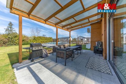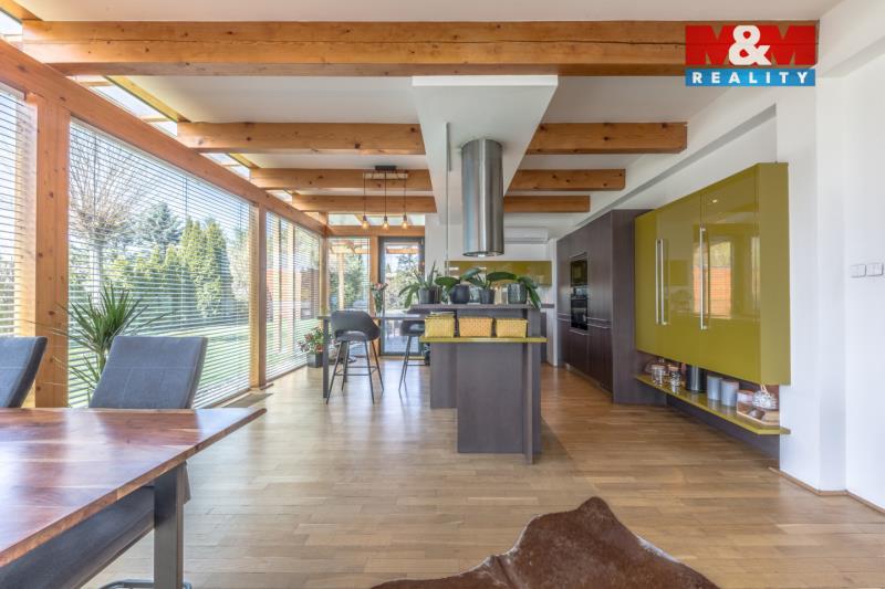 Exkluzivně prodáváme Ekologický rodinný dům v klidné části Nymburka (k.ú. Drahelice) s netradičním řešením - z každé místnosti je přímý vstup na zahradu. Díky velkému prosklení je interiér světlý a propojený s venkovním prostorem. ZP 172 m², UP 152 m² nabízí 5 místností, a stojí na pozemku 884 m². Dispozice: 4+kk - prostorný obývací pokoj s kuchyňským koutem a plně vybavenou kuch. linkou zn. Hanák, ložnice, dva pokoje, dvě koupelny (vana, sprcha, umyvadlo, 2 toalety, bidet), techn. místnost a prostorná chodba s vestavěnými skříněmi. Podlahové topení v obou koupelnách, podlah. konvektory v obýv. pokoji, plynový kotel s rozvodem do radiátorů, ohřev vody. Součástí domu je garáž. Kvalitní dřevěné podlahy v celém domě. Reko v roce 2025 - klimatizační jednotky, fasáda, venk. dlažba, vrata. Bonusem je krytý vyhřívaný bazén 18 m² s mořskou vodou zn. ALBIXON, hloubka 1,6 m. Okrasná a pravidelně udržovaná zahrada poskytuje dostatek soukromí. Finanční a právní servis máme pro vás připravený.