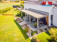Nabízíme k prodeji elegantní jednopodlažní rodinný dům o užitné ploše 152 m², situovaný na prostorném pozemku o rozloze 1 328 m². Tato moderní stavba z kvalitního systému Velox spojuje nadčasovou architekturu, vysoký technologický standard a harmonii s okolní přírodou. Interiér domu je navržen s důrazem na komfort a funkčnost. Dispozice zahrnuje světlý obývací pokoj propojený s kuchyní, ložnici, tři dětské pokoje, pracovnu s domácím kinem, prostornou šatnu, koupelnu s vanou, sprchovým koutem a WC, dále samostatnou toaletu a technickou místnost. Dům je vybaven moderními technologiemi pro pohodlné a úsporné bydlení – elektrické podlahové vytápění, klimatizace, venkovní žaluzie a kamerový systém. Součástí je také fotovoltaická elektrárna o výkonu 7 kW, optický internet a kompletní napojení na inženýrské sítě. Dominantou zahrady je přírodní koupací jezírko, které spolu s udržovanou zelení vytváří jedinečnou atmosféru klidu a soukromí. K relaxaci slouží zahradní pavilon s ohništěm.