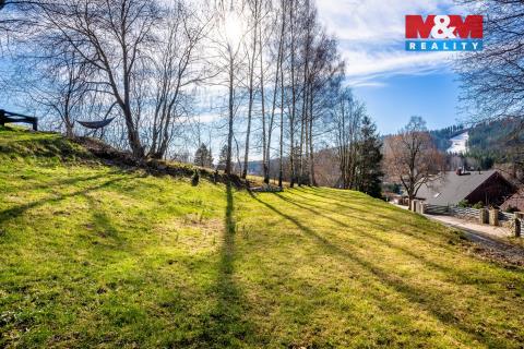 Nabízíme ke koupi rodinný dům v žádané lokalitě - obec Albrechtice v Jizerských horách. V přízemí domu kuchyně s jídelním koutem sousedící s obývacím pokojem. Koupelna s vanou a umyvadlem, toaleta samostatná. Předsíň s úložným prostorem. Schodiště nás zavede do 1. NP kde jsou 2 ložnice a pokoj s balkónem. Půda pochozí s možností vybudování dalších místností. Dům částečně podsklepený. Vytápění zajištěno plynovým kotlem a krbovými kamny, ohřev vody bojler. Podlahy dřevěné, PVC a koberec. Zahrada okrasná se stodolou, která skýtá další úložné prostory. Z domu nádherný výhled do okolí. V těsné blízkosti obchod, škola, vyhlášený lyžařský vlek Špičák. V okolí nepřeberné množství výletních míst, cyklotras a běžkařských tratí. Více informací sdělí makléř na prohlídce.