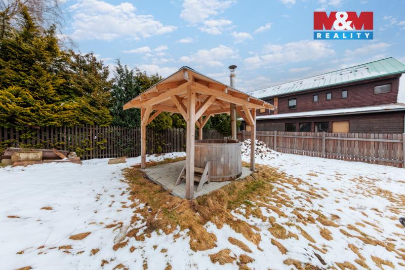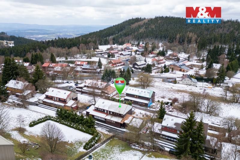 Prodáme dvougenerační dům se zahradou v Mariánské u Jáchymova. V přízemí se nachází byt 4+1 s koupelnou a dvěma WC, chodba a sauna s východem na terasu, v patře byt 3+1 s koupelnou a dvěma WC. Vytápění zajišťují akumulační kamna umístěná v každém pokoji, ohřev vody bojlery. Zahrada je částečně svažitá, na rovných částech je posezení s grilem vedle terasy a zastřešený koupací sud s ohřevem na tuhá paliva. Pro pohodlný život nabízí dům vše včetně velkého obytného prostoru pro dvě rodiny, parkovacího přístřešku, domácího wellness a krásného výhledu do okolí. Dům byl úspěšně provozován jako horská chalupa k pronájmu pro lyžaře, cyklisty a milovníky přírody. Uspořádání místností umožňuje bydlení i pronájem zároveň, nákupem této nemovitosti tedy získáte bydlení i vynikající investici. Z Mariánské se rychle dostanete do skiareálů na Plešivci a Klínovci nebo do lázní v Jáchymově. Pokud vás nabídka zaujala, neváhejte nás kontaktovat a domluvit si prohlídku.