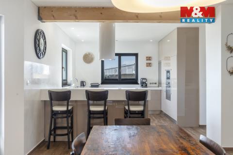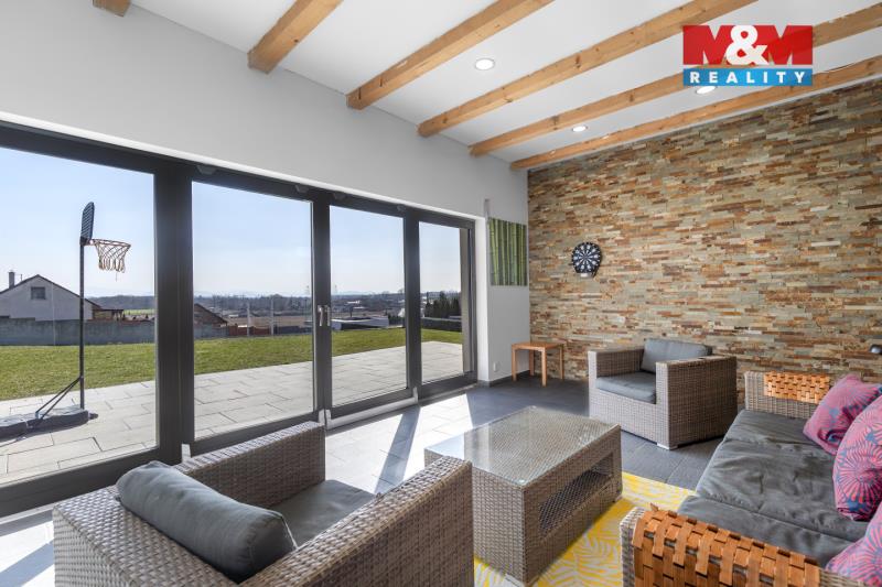 Nabízíme Vám k prodeji rodinný dům o dispozici 5+kk o celkové užitné ploše 190 m2 na klidném místě obce Jistebník s celkovou výměrou pozemku 1989 m2. Z prostorné chodby jsou vstupy do samostatných dvou dětských pokojů, ložnice, technické místnosti a dvou koupelen s WC. Dále přes křídlové dveře se dostanete do společného prostoru obývacího, jídelního, kuchyňského a relaxačního prostoru s krbem s teplovzdušnou vložkou. Tady je výstup na terasu, orientovanou na jižní stranu, spolu s letním obývacím pokojem. Dům je napojen na obecní vodovod, přes čističku odpadních vod na obecní kanalizaci. Podlahové vytápění a ohřev vody zabezpečeno tepelným čerpadlem vzduch-voda, PENB "A". K dispozici prostorná garáž s úložným prostorem. Náš hypoteční specialista Vám nabídne nejvhodnější financování této výjimečné nemovitosti.