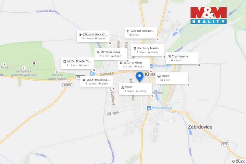 Prodej samostatného rodinného domu nedaleko náměstí v Křinci. Jedná se o dům postavený v roce 1867 jako Synagoga, v roce 1945 došlo k úpravám a rekolaudaci na rodinný dům. V přízemí domu je k dispozici kuchyně, pokoj, prádelna, koupelna, samostatná toaleta a dvě prostorné komory. Po schodech se dostaneme do patra, kde je dalších 5 pokojů, hala a chodba. Dům je tedy vhodný jako prostorné rodinné bydlení, k vybudování bytových jednotek nebo k podnikání. V domě je funkční elektřina, je napojen na studnu a na septik s trativodem. V obci je k dispozici kanalizace i vodovod. Na pozemku se dále nachází garáž a kůlny. Z Křince je skvělá dostupnost do Nymburka - 13 km. Najdete zde veškerou občanskou vybavenost - MŠ a ZŠ, poštu, obchody s potravinami, lékaře, zubaře, čerpací stanici, vlakové nádraží a další. Více info v RK.