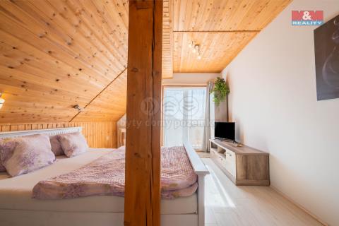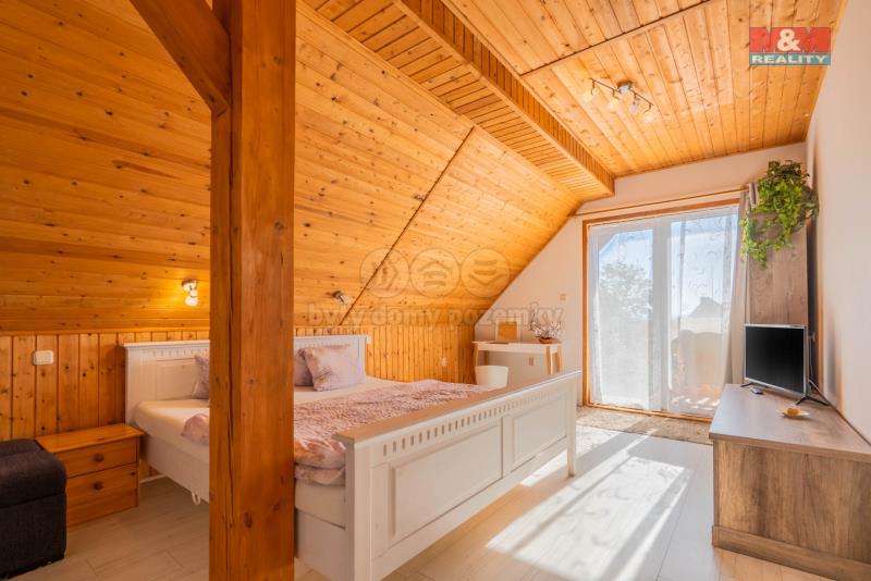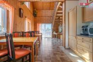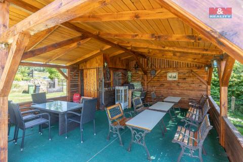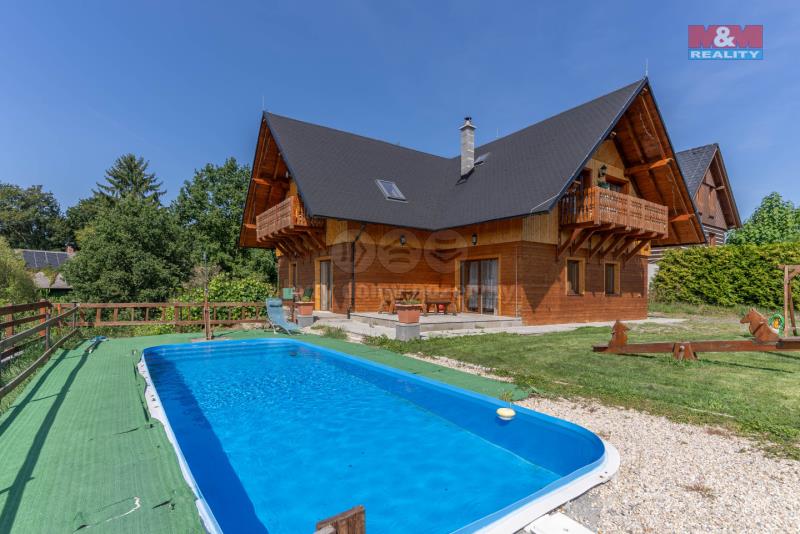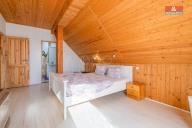 Nabízíme k prodeji nadstandardně prostorný dům s celkem 7 obytnými místnostmi, zahradou a bazénem, situovaný v krásné lokalitě nedaleko Českého Ráje. Prostorný obývací pokoj s krbem, propojený s kuchyní a jídelnou se vstupem na venkovní terasu. Součástí přízemí je také samostatný apartmán pro hosty s vlastní koupelnou, WC a vstupem na zahradu. Patro nabízí tři komfortní ložnice, každá s vlastní koupelnou, WC a balkonem. Z otevřeného schodiště je výhled na jídelnu. V obou podlažích se nachází úklidové komory. Dům nabízí rozšíření o půdní prostor s možností přestavby na další pokoj či útulné podkroví. Zahrada s krytým posezením a bazénem. Dvě kůlny vhodné pro uskladnění nářadí či hobby využití. Čistička odpadních vod s větší kapacitou, zajišťující částečnou nezávislost domu. Dům je ideální jako rodinné bydlení v klidném prostředí, tak i jako investice pro komerční využití (penzion, apartmány).