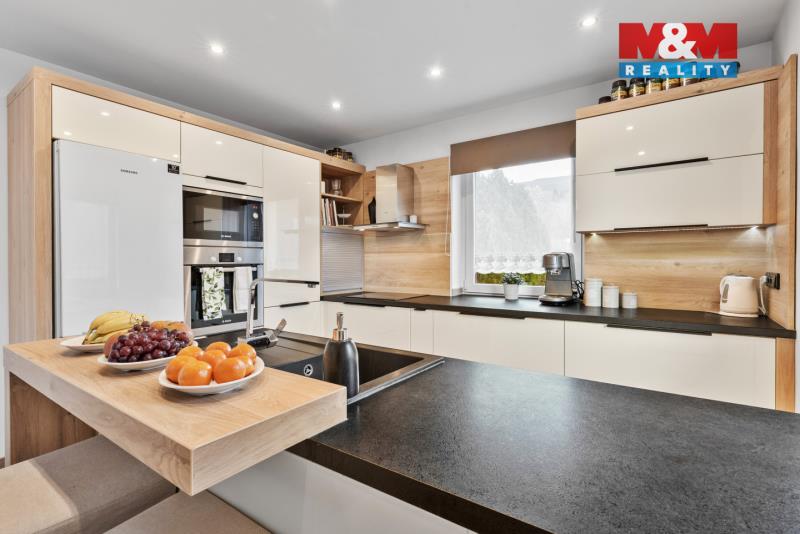 Hledáte dům, který má prostor, soukromí a výhledy, které Vás nepřestanou bavit? Tenhle Vás překvapí. Srdcem tohoto domu je velkorysý obývací pokoj s krbem a výhledem, který Vás neomrzí, dále se zde nachází jedna z ložnic. Kuchyně na míru? Je tu! Krytý balkon na ranní kávu? Samozřejmě. Ale to nejlepší na Vás čeká v patře – probouzet se můžete s výhledem přímo na Lysou horu, nebo si užívat výhledy z kryté lodžie, na kterou je vstup ze 2 pokojů. Možná zde využijete i třetí pokoj. Nacházíme se na samém okraji obce, na pozemku, za kterým už je jen klid. Prostorný dům o dispozici 5+2kk v Horní Rokytnici disponuje podlahovou plochou 212 m2 a stojí na pozemku 414 m2. V suterénu, který má samostatný vstup se nachází praktické zázemí například pro návštěvy nebo jako samostatná část pro ubytování hostů, dále pak prádelna, pracovna a technická místnost s automatickým kotlem. Jde o vyhledávanou horskou oblast s celoročním využitím – v zimě oceníte blízkost lyžařských areálů, v létě pak turistiku.