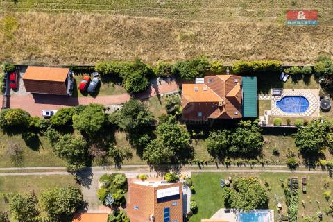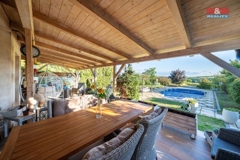 Tady se začíná psát jiný příběh. Příběh o domě, který má prostor, styl a duši. Dispozice 5+KK (224m2)- tedy 4x ložnice se dvěma šatnami, dvě koupelny, technická místnost, sklepy a hlavně otevřený, vzdušný obytný prostor s kuchyní. A právě z něj se vychází rovnou na zastřešenou terasu o cca 50 m² – ideální místo pro snídani, letní večery i tiché ranní chvilky s kávou. Venku vás čeká více než 3 000 m² soukromí. Dům je zasazený dál od hlavní silnice, cca 55 m, což zajišťuje nerušený klid a naprosté soukromí. Na pozemku najdete nejen bazén, ale také vlastní studnu, která vám dává svobodu a nezávislost. Za elektrickou bránou na dálkové ovládání pohodlně zaparkujete až šest aut – dvě v garáži a další čtyři venku. Celý dům je vytápěn moderním tepelným čerpadlem, které spojuje komfort s úsporným provozem a v létě můžete zapnout klimatizace. Znojmo máte na dosah, ale při návratu domů vás čeká jiný svět – tichý, klidný a jen váš. Tohle není běžná nabídka. Tohle je místo, kde se chcete žít.