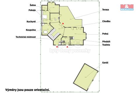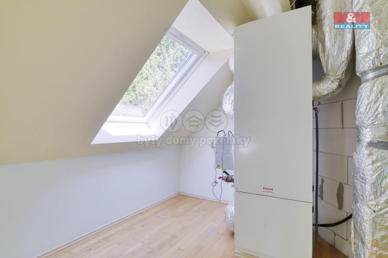Prodej rodinného domu v tiché, klidné části Úšovic. Dům je velmi zajímavě řešen, kdy v přízemí je velká kuchyně s jídelnou a obývací částí s krbem, řešena jako jeden velký, vzdušný prostor. Koupelna, WC pro hosty, šatna, technická místnost, ložnice, to jsou další místnosti v přízemí domu. Po schodišti se vyjde do prvního patra, kde v levém křídle jsou dva pokoje a koupelna a v pravém křídle další dva pokoje s koupelnou. V celém domě podlaha dřevěná plovoucí, v koupelnách dlažba. Prostornými okny a dveřmi se do místností v přízemí dostává dostatek slunečního svitu. Terasa, část které je připravena pro vybudování zimní zahrady, je orientovaná na jih. Pod stromy z východní strany zahrady je terasa pro venkovní posezení a grilování. Vlastní studna, zabudované sprinklery pro zavlažování zahrady, vysazený porost z různých druhů listnatých a jehličnatých stromů a keřů dává pozemku jedinečný ráz a nabízí zákoutí pro relax. Rádi vám při prohlídce řekneme i další, podrobnější informace.