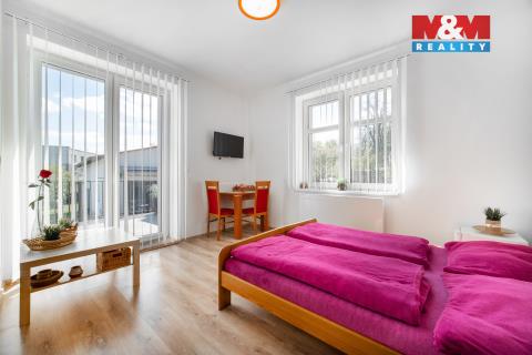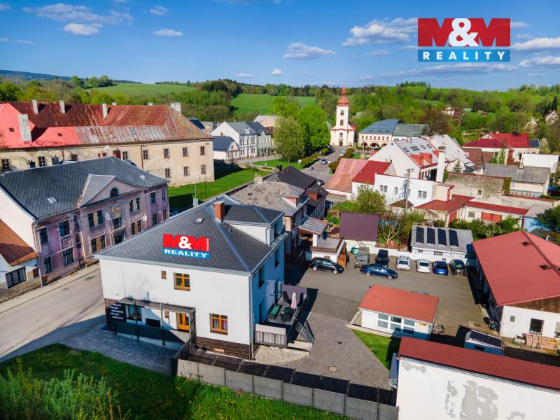 Nabízíme k prodeji samostatně stojící rodinný dům o podlahové ploše 245 m², vhodný pro kombinaci komfortního bydlení a podnikání. Přízemí domu tvoří prostory k podnikání s výlohou do hlavní ulice, kancelář a samostatné WC. Dále se zde nacházejí dva apartmány, každý s vlastním sociálním zázemím a vstupem na terasu, což nabízí ideální příležitost k pronájmu či ubytovacím službám. V prvním patře je situována moderní bytová jednotka s otevřeným obývacím prostorem a kuchyňským koutem, ložnicí s navazující koupelnou, samostatným WC, spíží a technickou místností. Podkroví nabízí dvě samostatné ložnice, koupelnu a praktické šatní prostory. Součástí nemovitosti je kryté garážové stání propojené s dílnou a skladovací částí, stejně jako udržovaná zahrada poskytující dostatek soukromí a prostoru pro relaxaci. Nemovitost představuje zajímavou investiční příležitost s širokými možnostmi využití. Pro více informací či sjednání prohlídky nás neváhejte kontaktovat.