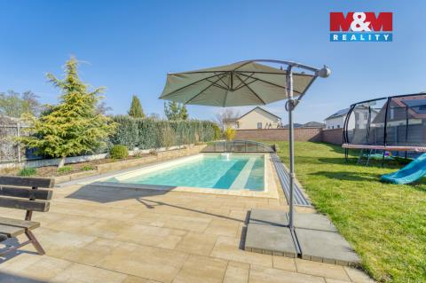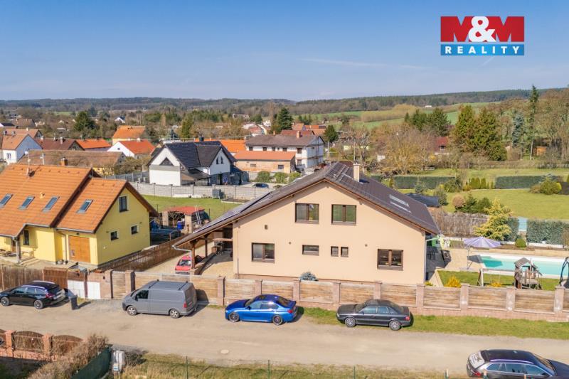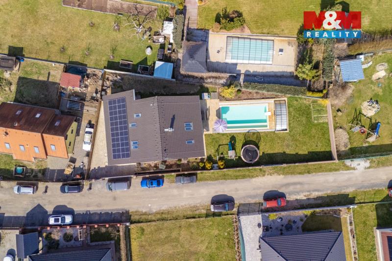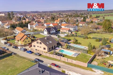 Na první pohled kvalitní dům, který po vstupu překvapí svým velkorysým prostorem, dispozicí i atmosférou. Nabízíme k prodeji rodinný dům o užitné ploše cca 250 m² s pozemkem 830 m² v klidné části obce Vlkýš u Heřmanovy Huti, jen pár minut od Plzně. Dům je řešen jako patrový a nabízí dostatek prostoru pro větší rodinu díky své dispozici 6+kk (přízemí - obývací pokoj s kuchyní a krbem, ložnice, pracovna, koupelna, chodba, patro - 3 samostatné pokoje, koupelna se saunou, šatna, WC) i kombinaci bydlení a práce. Výhodou je Fotovoltaika na střeše (9,9 kW), která výrazně snižuje náklady na elektřinu, zabezpečovací systém Jablotron, nebo třeba zónová regulace vytápění či venkovní rolety. Samozřejmostí je garáž, další možnost parkování za vraty a příjemné venkovní zázemí se zahradou, která poskytuje dostatek soukromí i prostoru pro relaxaci. Velkým benefitem je také prostorný luxusní bazén, který oceníte zejména v letních měsících.
