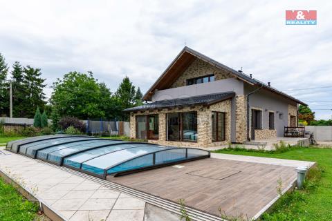 Nabízíme k prodeji exkluzivní rodinný dom ve Vratimově. Spodní část domu disponuje prostorným obývacím pokojem s kuchyní a terasou, technickou místností a vstupem do velké garáže vybavené pro možnost opravy vozidel. V horní části domu se nachází dva pokoje, ložnice a pracovna odkud je přístup na balkon. V celém domě je podlahové topení včetně vyhřívání dlažby kolem domu. Dům obklopuje prostorná zahrada s bazénem a krytou vyhřívanou vyjímečnou pergolou disponující sociálním zařízením pro hosty. Dále je zde trávník se zavlažováním a automatikou sekání trávy. Spokojen bude i váš pes v krásné, zděné a zateplené prostě luxusní psí boudě na zahradě. Líbí se Vám tento nádherný dům? S financováním vám rádi pomohou naší specialisté. Nečekejte s prohlídkou a kontaktujte makléře.