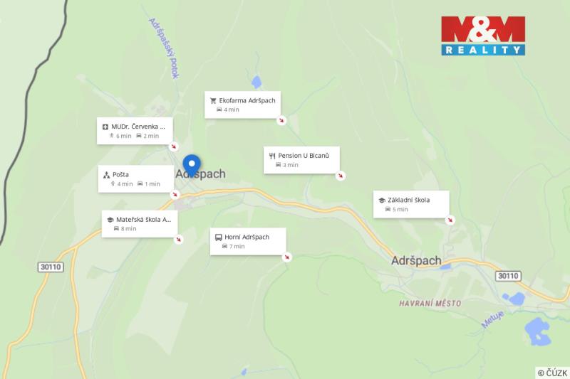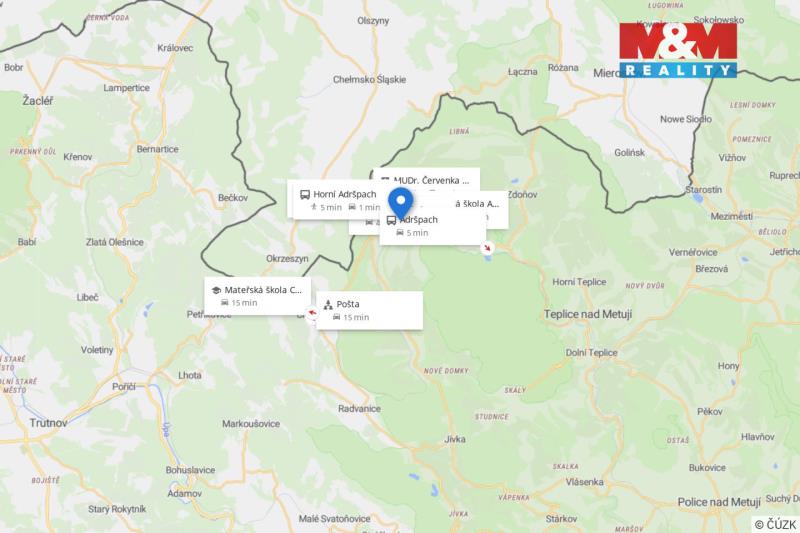 Prodej bývalé fary v klidné části Horní Adršpachu – komplex 3 samostatných budov na pozemku 2 620 m². Historie z počátku 19. století, smíšená konstrukce, citlivá rekonstrukce (krovy, trámy, střecha bez hřebíků – dřevěné kolíky, venkovní omítky). Užitná plocha 311 m², 15 místností, 1 podzemní a 2 nadzemní podlaží. Přízemí: vstupní chodba, velký obytný prostor, plánovaná kuchyň, garsonka, WC a sprchy; podkroví: 4 pokoje, 2 WC; zadní samostatný apartmán s kuchyňkou a soc. zařízením. Po rekonstrukci i stodola. Vhodné jako penzion, rodinné bydlení, rekreace, školící středisko nebo wellness. Stavební dokumentace k dispozici.